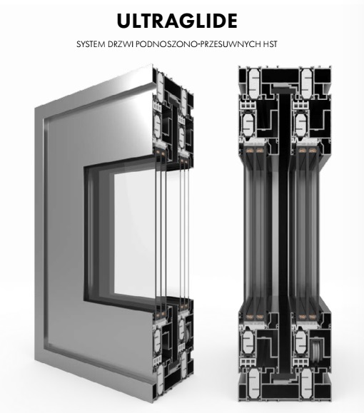 System przeznaczony do budowy drzwi podnoszono-przesuwnych. Dostosowany do najnowszych wymagań w dziedzinie izolacyjności termicznej, estetyki i bezpieczeństwa. W systemie zastosowano przekładkę termiczną o szerokościach 22 i 28 mm wzbogaconą o włókno szklane. Wkłady termiczne oraz wkłady podszybowe poprawiają izolacyjność termiczną przekroju. System pozwala na projektowanie konstrukcji o bardzo dużych gabarytach skrzydeł jezdnych. Umożliwia produkcję dużych przeszkleń, co zapewnia doskonałe doświetlenie wnętrz oraz ułatwia ich aranżację, zachowując jednocześnie stabilność, funkcjonalność i lekkość konstrukcji. Możliwość montażu szyb jedno lub dwukomorowych.